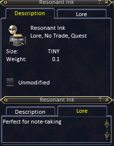 - NOTE: The April 2026 Patch added Resonant Ink to this quest. As you kill related MoB's it can be acquired as a drop. Loot one!