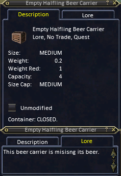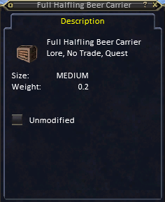 To finish up, give the Full Halfling Beer Carrier to Andy Littlefoot.