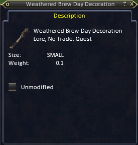 1) INFO: Some may think that this quest, for the Drunkard's Stein, is a Brew Day Quest, but it is not!