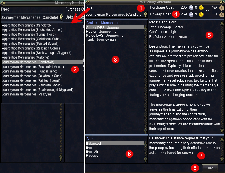 * NOTE / UPDATE: The May 2022 Patch changed Mercs to be only one (1) tier of the two (2) mercenary types, instead of five (5) tiers each of the two (2) mercenary types. Originally each Merc type (Apprentice and Journeyman) had five (5) tiers. Essentially, they eliminated Tier 1 to Tier IV of both Merc types, so that now there is simply an Apprentice and Journeyman Mercenary options (equivalent to what was Tier V).