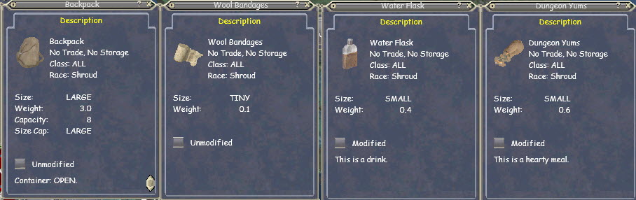 A Shroud Bank window might also pop up when you unshroud. The Shroud Bank (see above image) window will contain all of the items you acquired after you shrouded, be it looted, purchased, taken from your Main Bank, Parcels or any other sources. This does not include the bag, food, drink, water and / or weapon that was given to you as part of the shroud form (see above).