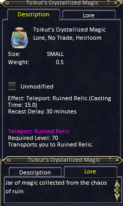 In the January 2026 Patch Tsikut's Crystallized Magic (a click portal to Ruined Relic) was added to the game, due popular demand. You can get it from Tsikut in Ruined Relic (key word 'traveled'), but only if you have the proper progression that would allow you to get to and speak to Tsikut.